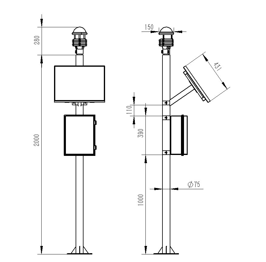 5.两米碳钢支架,顶部无需法兰盘可直接套接传感器