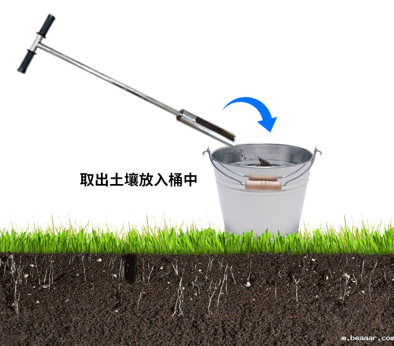 1. 取土钻钻头、手柄、支杆,完成后将取土钻竖直于地面,双手紧握手柄顺时针下压慢速转动。(注意:不要太用力,务必慢速多转几圈,防止钻头跑偏至孔洞打歪)